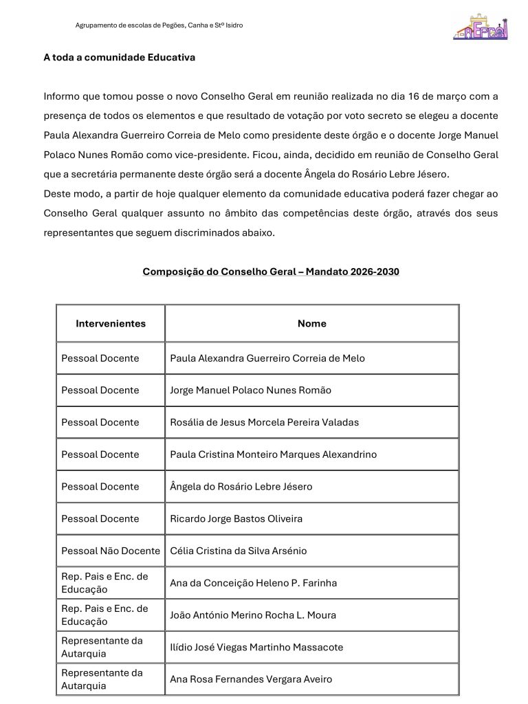 Agrupamento de Escolas de Pegões, Canha e Santo Isidro